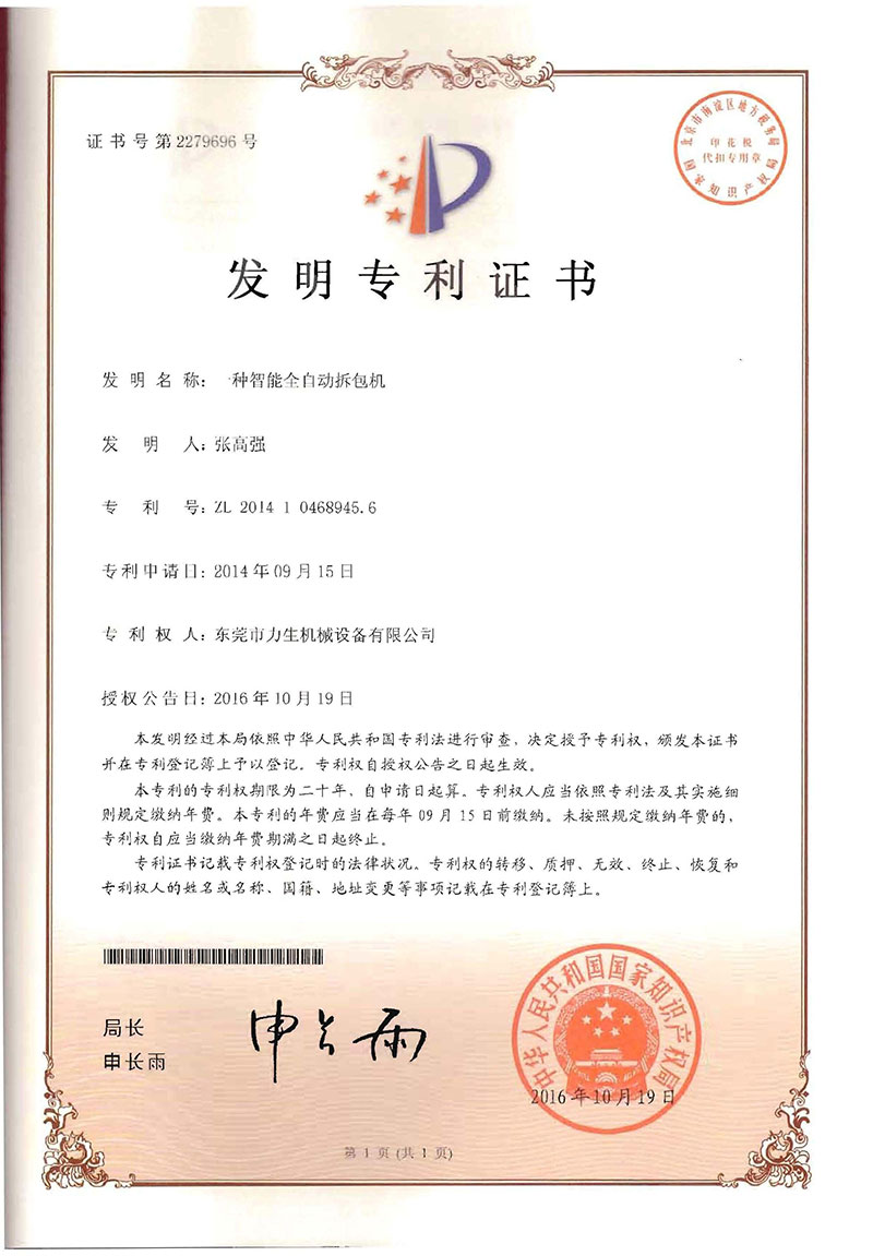 National invention patent An intelligent automatic unpacking machine