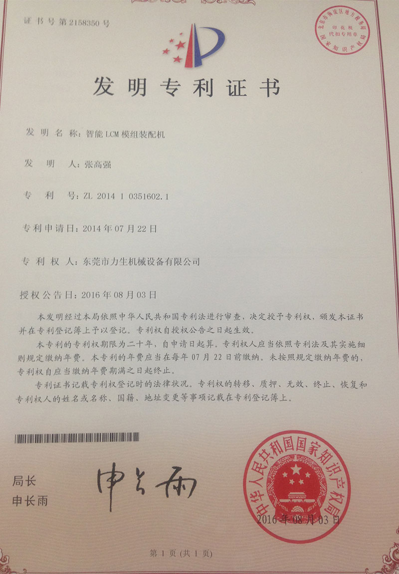 National invention patent Intelligent LCM module assembly machine