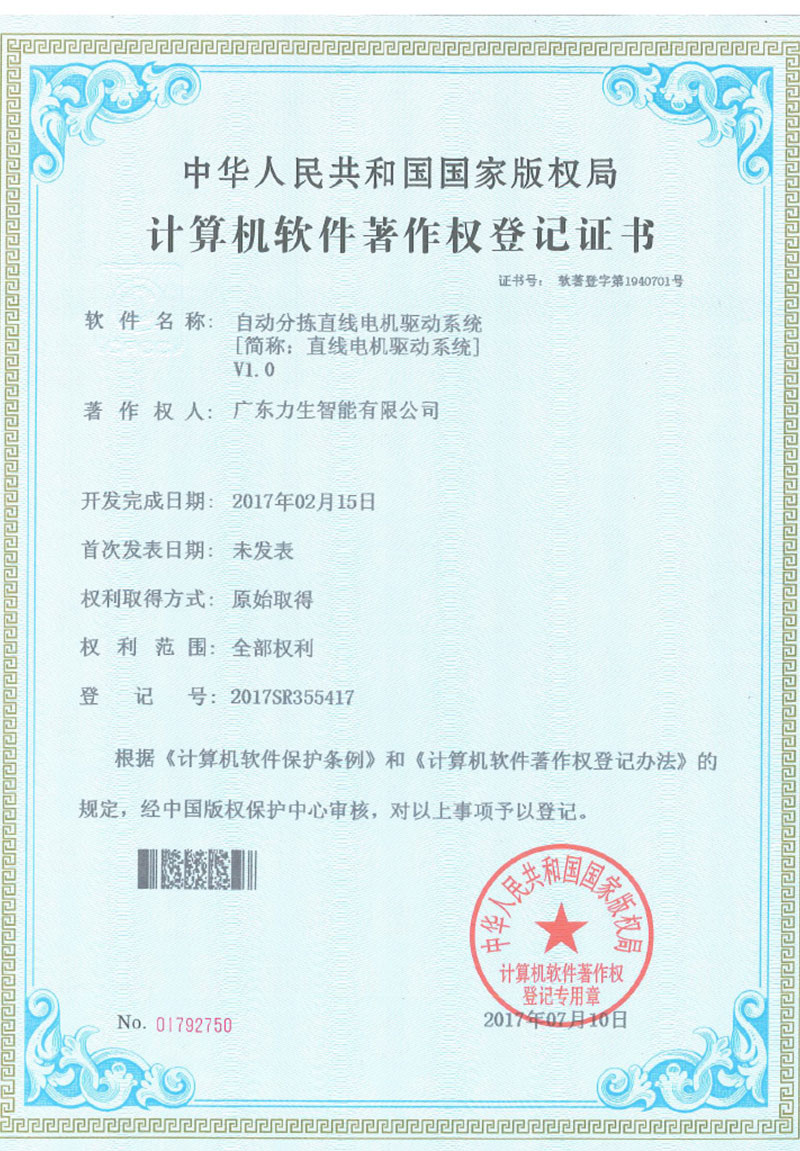 Software copyright automatic sorting linear motor drive system V1.0