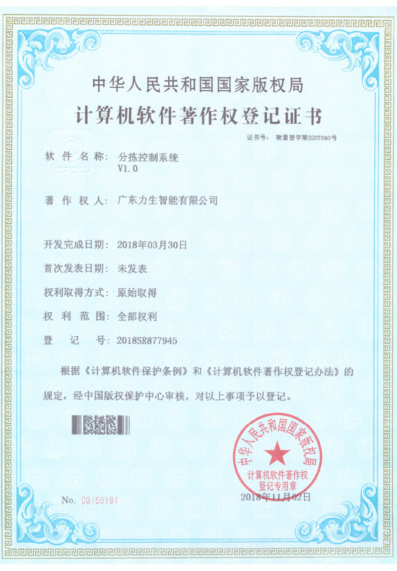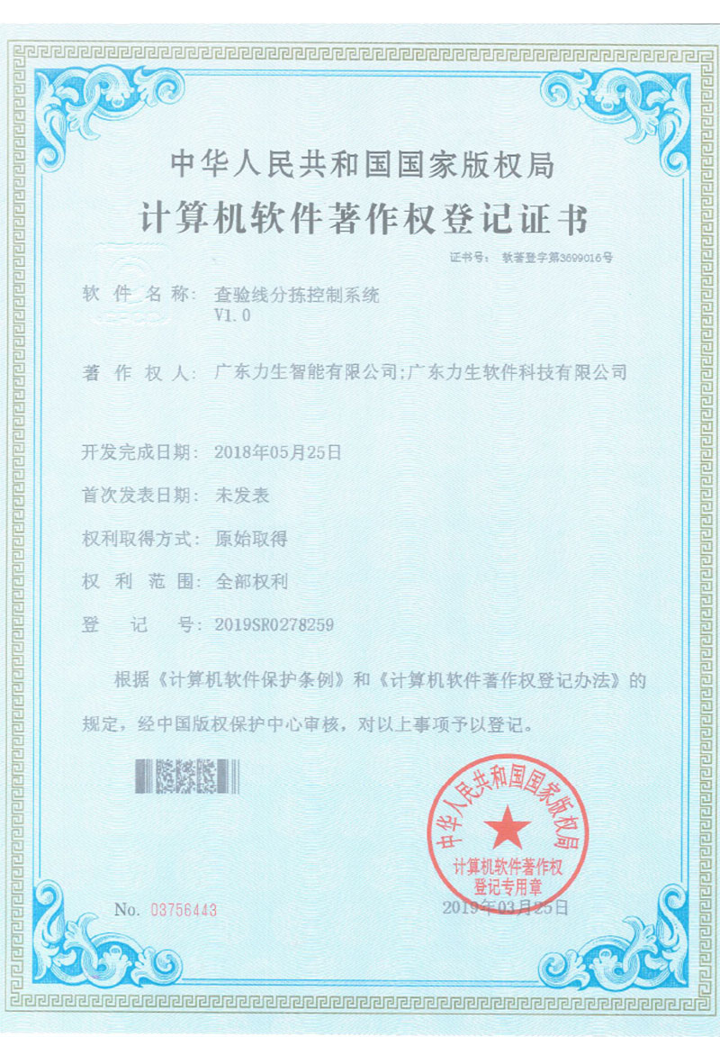 Software copyright inspection line sorting control system V1.0