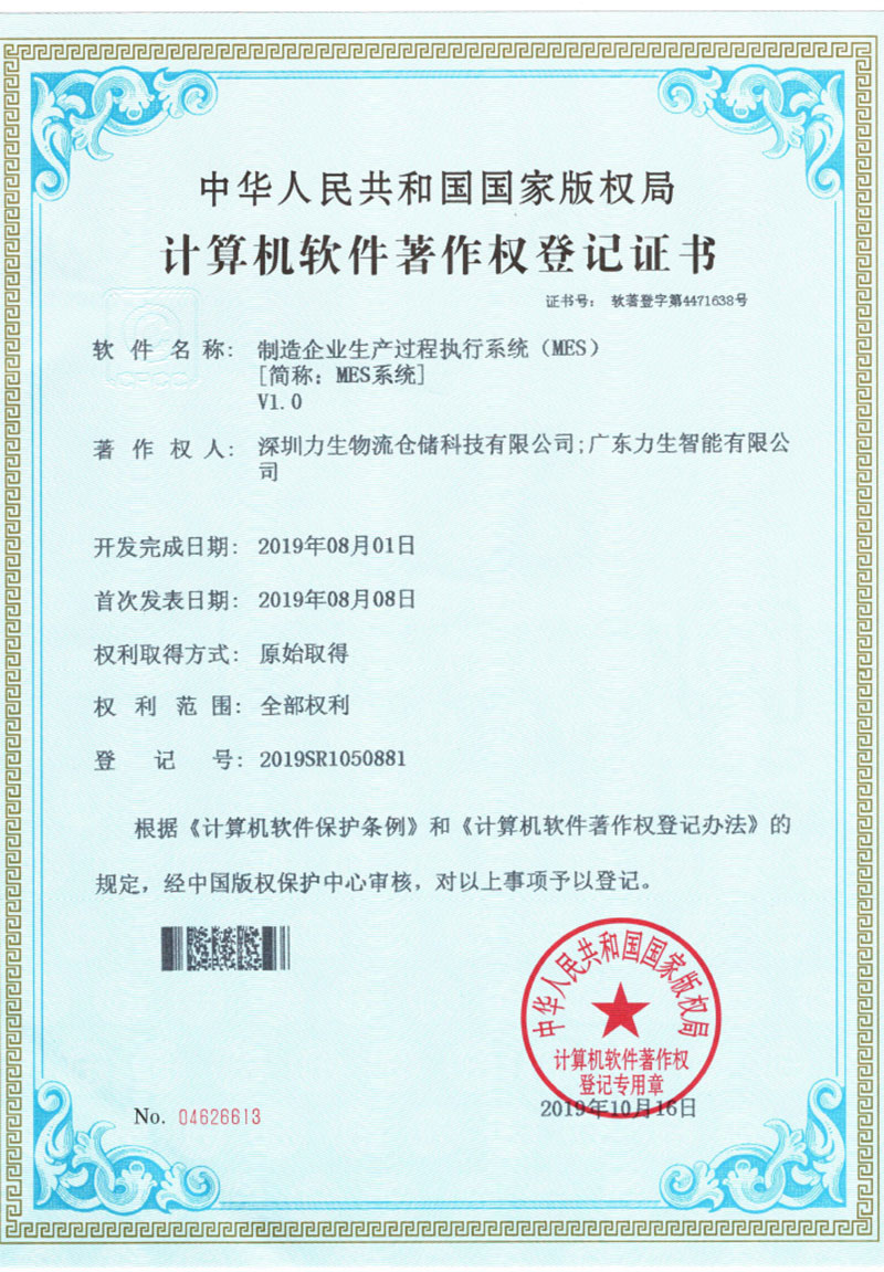 Software copyright manufacturing process execution system (MES)