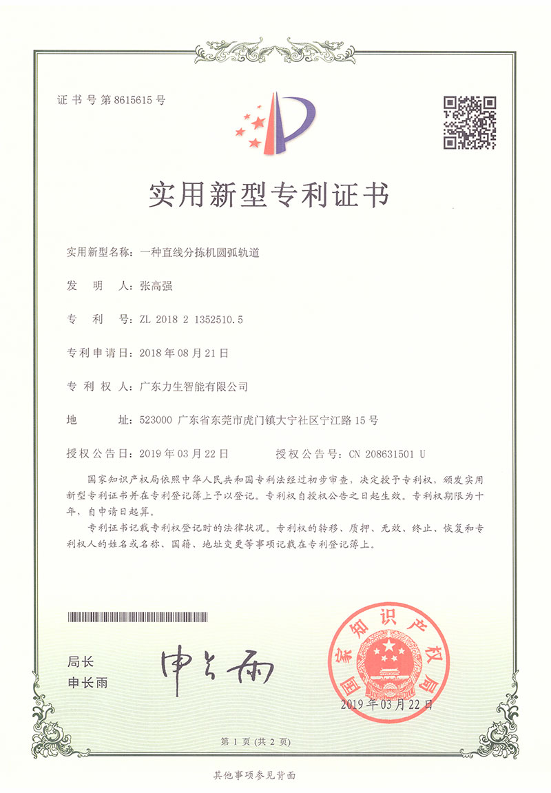 Utility model patent certificate A kind of arc track for linear sorter
