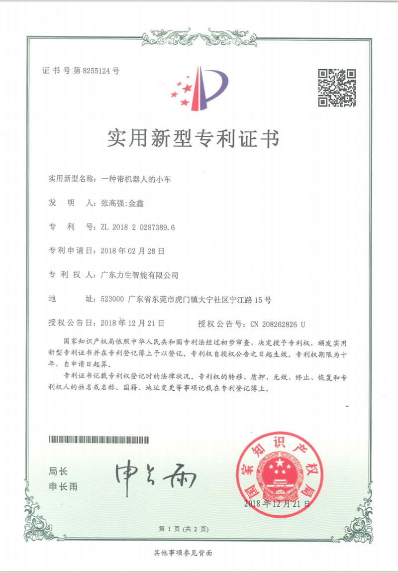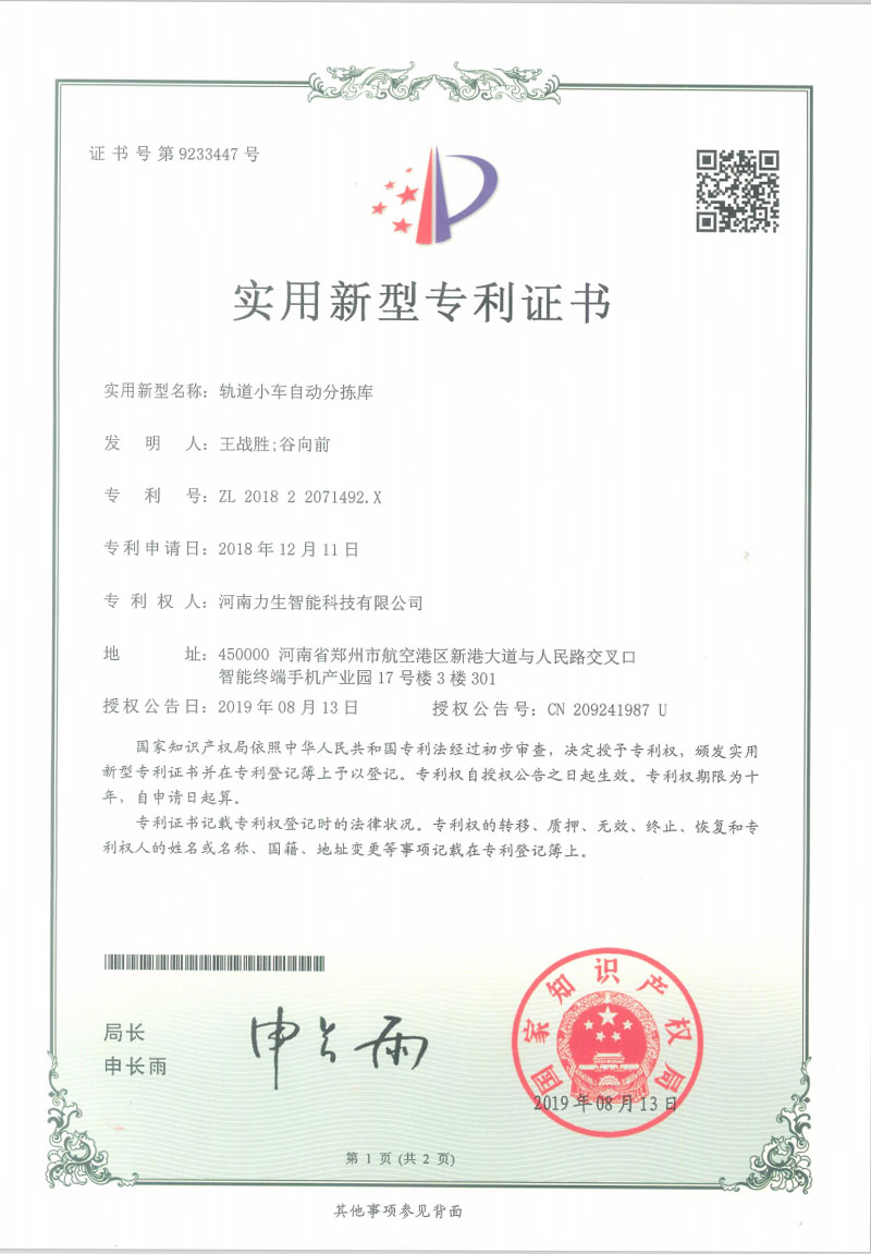 Utility model patent certificate RGV automatic sorting warehouse