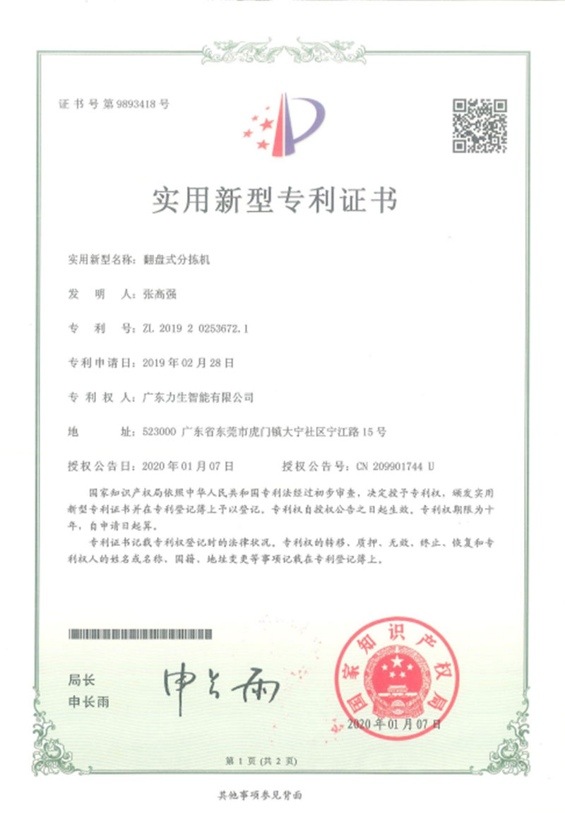 Utility model patent certificate Tilt tray sorter