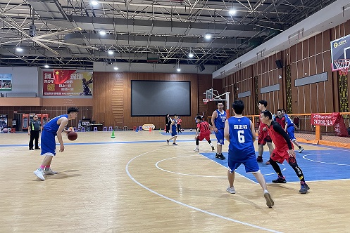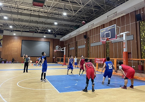 At 5 o’clock in the afternoon, with the whistle from referee, basketball was thrown into air, and both parties strove to grab the ball. The game officially began.